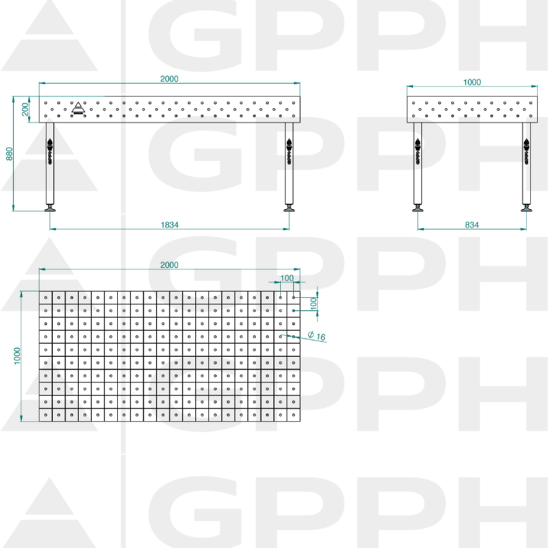 Les tables de soudage doivent être plates! Les plans de travail des tables ECO, d'une épaisseur de 8mm, ont des nervures denses, ce qui a un impact sur la planéité de la surface de travail. Une sous-structure massive et rigide du plan de travail assure une stabilité maximale pendant l'utilisation et une protection contre la déformation. La tolérance sur la planéité de l'ensemble de la table est de ±0,5 mm* et la tolérance des trous de la table de soudage est de ±0,1 mm. La table 2000x1000 mm comporte 2 nervure dans le sens de la longueur et 4 nervures dans le sens de la largeur.