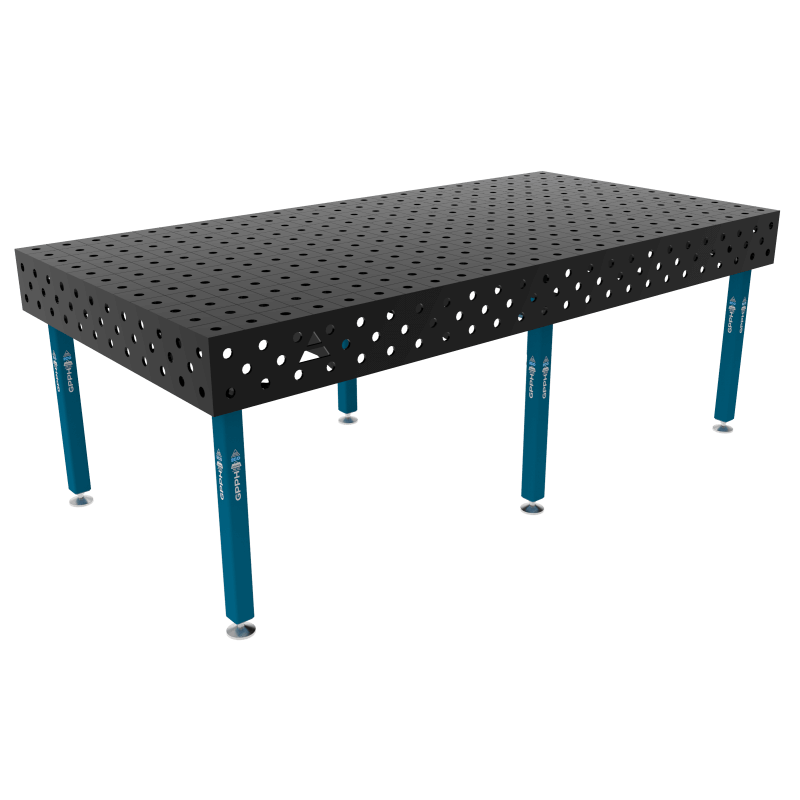 Les pieds des tables de soudage ECO, de section 60x60 mm, ont une capacité de charge de 250 kg/pied. Dans le cas de la version 3000x1480 mm, qui comporte huit pieds, la capacité de charge maximale est de 2 000 kg.