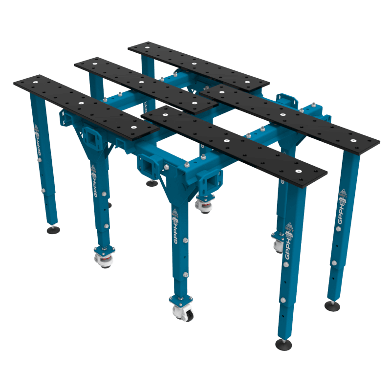 Ze hebben gefreesde en afgeschuinde gaten voor eenvoudige installatie van gereedschap. De modulaire tafels zijn compatibel met gereedschappen uit de PRO-serie. Bovendien kun je door het ontwerp van onze modulaire tafels het aantal plaatsen voor het bevestigen van gereedschap in de openingen tussen de tafelbladplaten vergroten - meer ergonomie bij het werk.