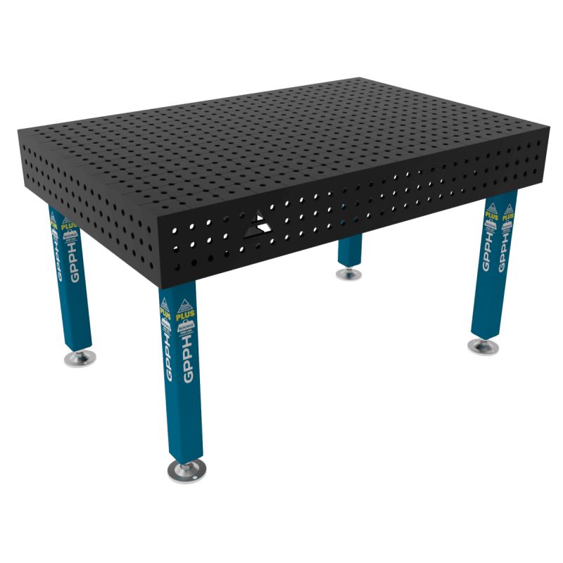 De lastafel moet vlak zijn! Werkbladen van de PLUS tafels, met een dikte van 12 mm, hebben een dichte ribbel, die een impact heeft op het vlakke werkoppervlak. Een massieve en stijve onderconstructie van het werkblad zorgt voor de hoogste stabiliteit tijdens gebruik en bescherming tegen vervorming. Tolerantie op vlakheid voor de hele tafel is ±0,3 mm* De tafel van 1500x1000 mm heeft 2 rib in de lengte en 3 ribben in de breedte.