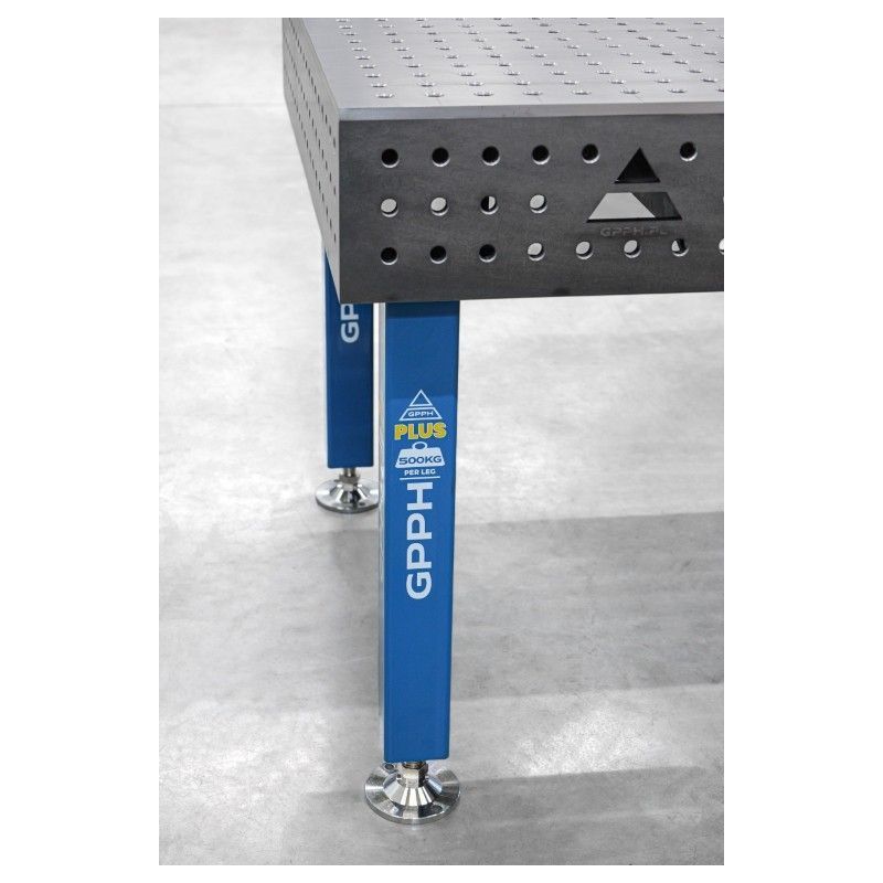 Poten in de PLUS lastafels, gemaakt van 80x80 mm profiel, hebben een draagvermogen van 500 kg/poot. In het geval van de versie 3000x1480 mm, die 8 poten heeft, krijgt u een maximale belastbaarheid van 4 000 kg.