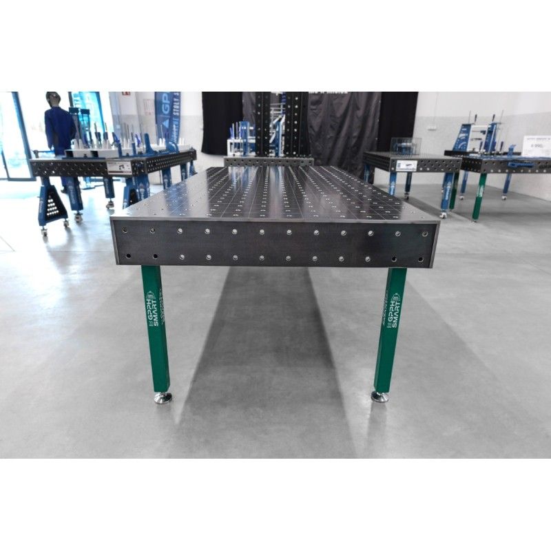 De GPPH SMART 12 2400x1200 mm lastafel wordt geleverd met φ28 en φ16 gaten, 100x100 mm raster. Dit zijn de meest universele configuraties.