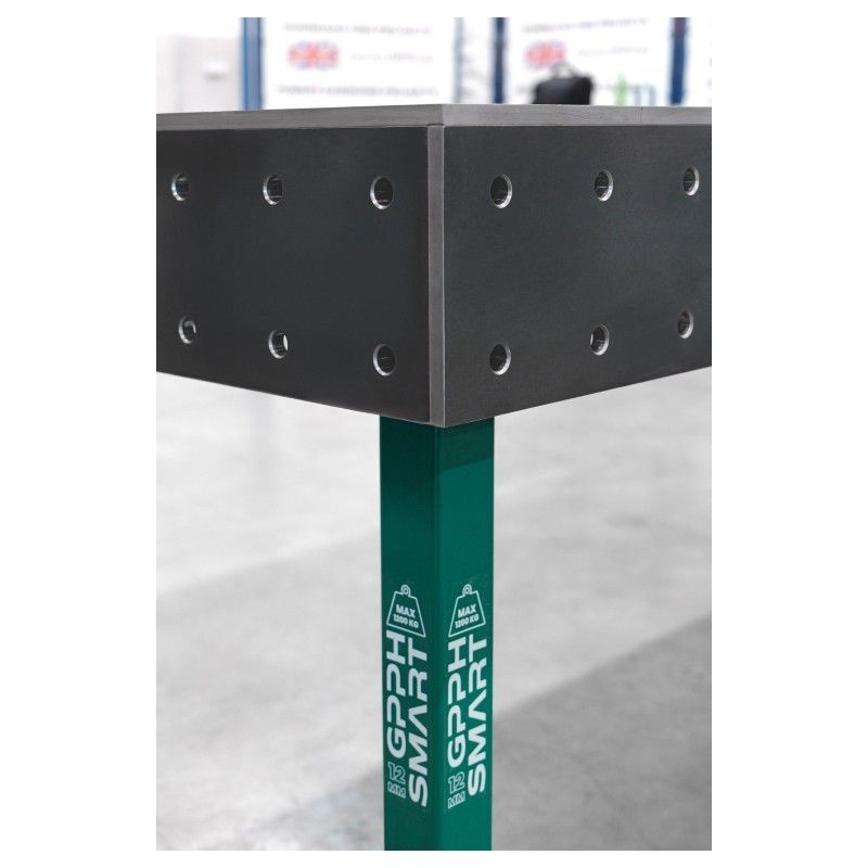 I den gjeldende konfigurasjonen du har valgt: GPPH SMART 12 sveisebord i hullsystem, 100x100 mm rutenett, med ben
