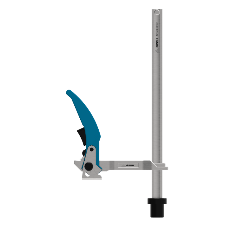 O grampo de fixação com uma alavanca φ16mm pode ser usado para as mesas de soldadura das séries PRO, PLUS, ECO, BASIC e para a mesa DIY com furos do sistema φ16mm.