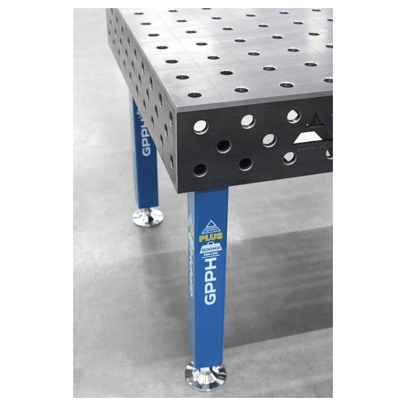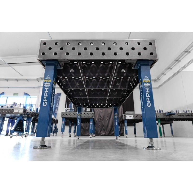 As pernas das mesas de soldadura PLUS, feitas de secção 80x80mm, têm uma capacidade de carga de 500 kg/perna. No caso da versão 3000x1480 mm, que tem oito pernas, obterá uma capacidade de carga máxima de 4 000 kg.