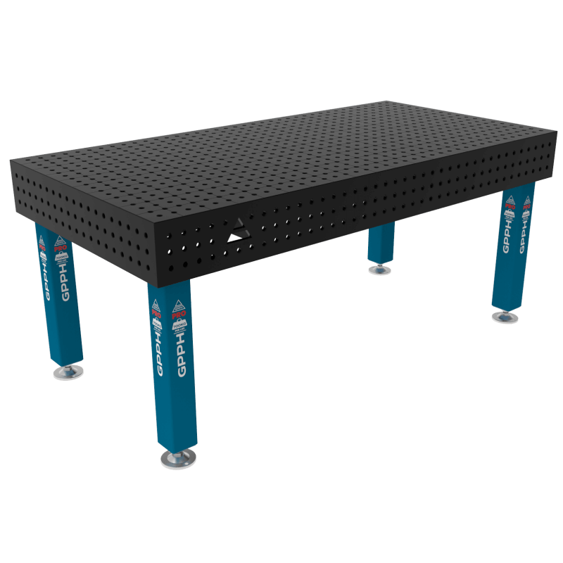 As pernas das mesas de soldadura PRO, feitas de secção 100x100 mm, têm uma capacidade de carga de 700 kg/perna. No caso da versão 3000x1480 mm, que tem oito 8 pernas, obterá uma capacidade de carga máxima de 5 600 kg.
