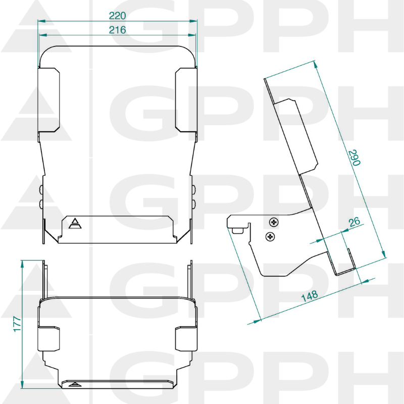 A prateleira móvel para documentação tem as dimensões de 220x177x148 mm.