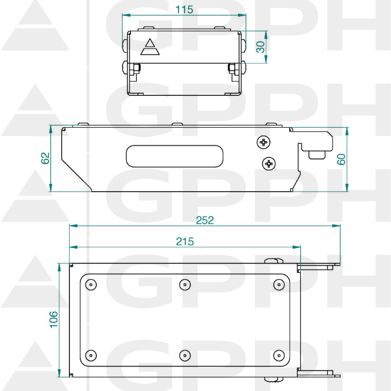 A prateleira móvel plana S tem as dimensões de 252x106x62 mm.