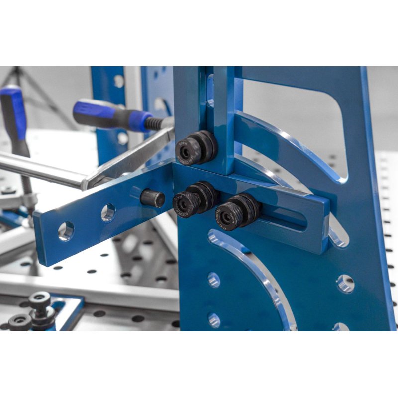 Utilizando os furos redondos e o furo ranhurado, o utilizador pode posicioná-la tanto na mesa como juntando-a a outras ferramentas. Permite criar as estruturas 3D mantendo os ângulos adequados dos componentes soldados.