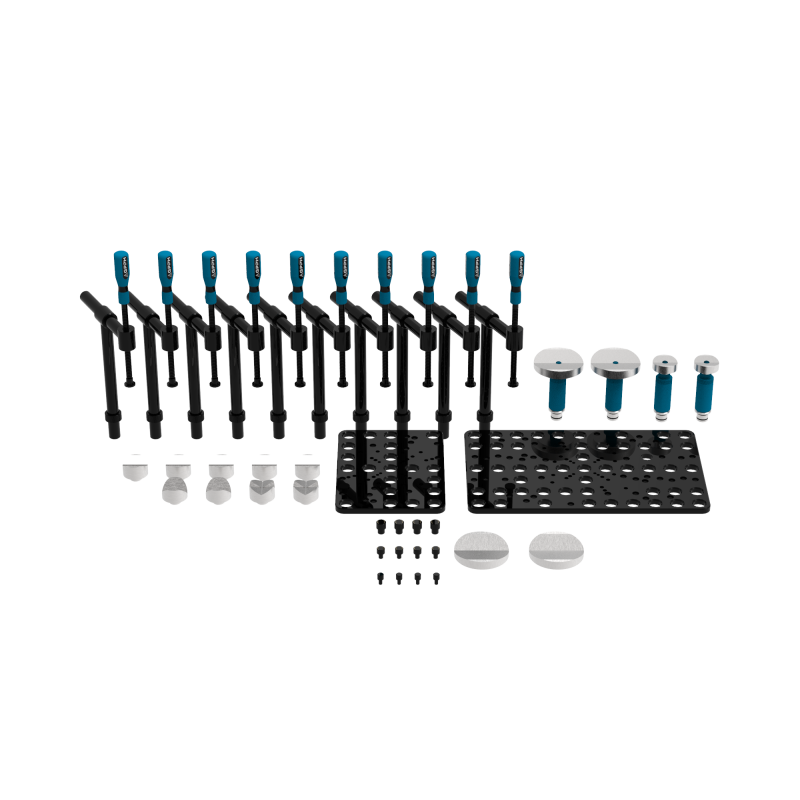 Setul COMPACT este o soluție practică pentru întreprinderile și atelierele mai mici, care au nevoie de un set de scule de sudură pentru țevi solid, dar compact. Oferă un set de bază, dar funcțional, de dispozitive de fixare și prisme, permițând poziționarea eficientă a elementelor pe masă.