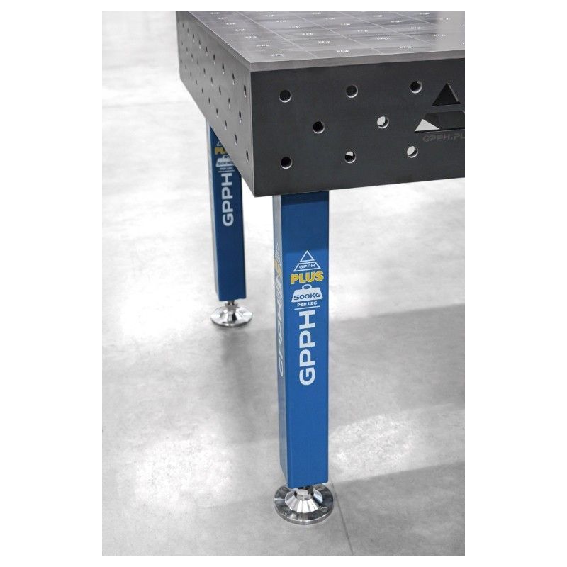 Benen i PLUS-svetsborden, som är tillverkade av 80x80 mm-profiler, har en lastkapacitet på 500 kg/ben. När det gäller 3000x1480 mm-versionen, som har åtta 8 ben, får du en maximal lastkapacitet på 4 000 kg.