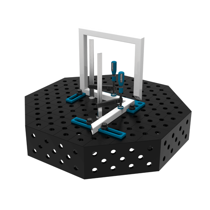 Du kommer att använda de frästa verktygen för att arbeta på de åttkantiga svetsborden i serien. Tack vare dem kan du med precision tillverka alla plana 2D- och rumsliga 3D-konstruktioner. Och allt detta på mycket kortare tid!