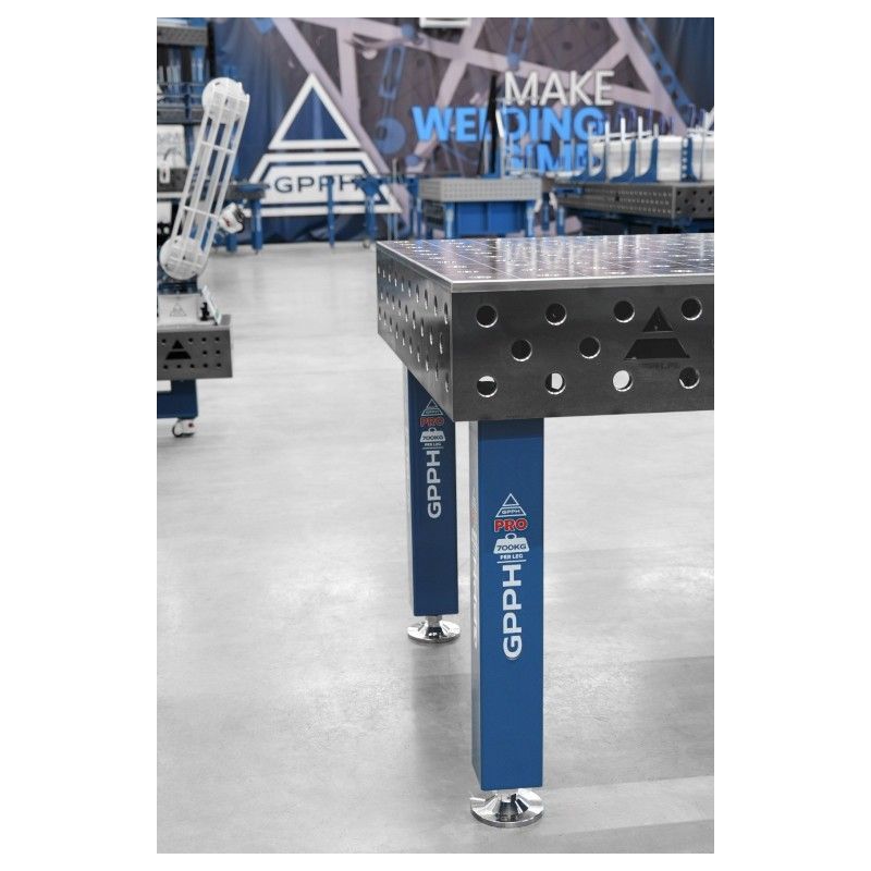 100x100 mm kesitli PRO kaynak masalarındaki ayaklar 700 kg/bacak yük kapasitesine sahiptir. Sekiz adet 8 ayaklı 3000x1480 mm versiyonunda ise maksimum 5 600 kg yük kapasitesi elde edersiniz.